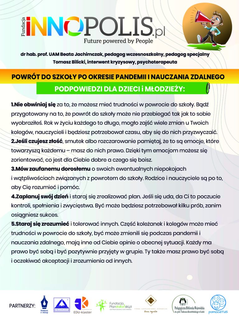 Powrót do szkoły po okresie Pandemii i nauczania zdalnego