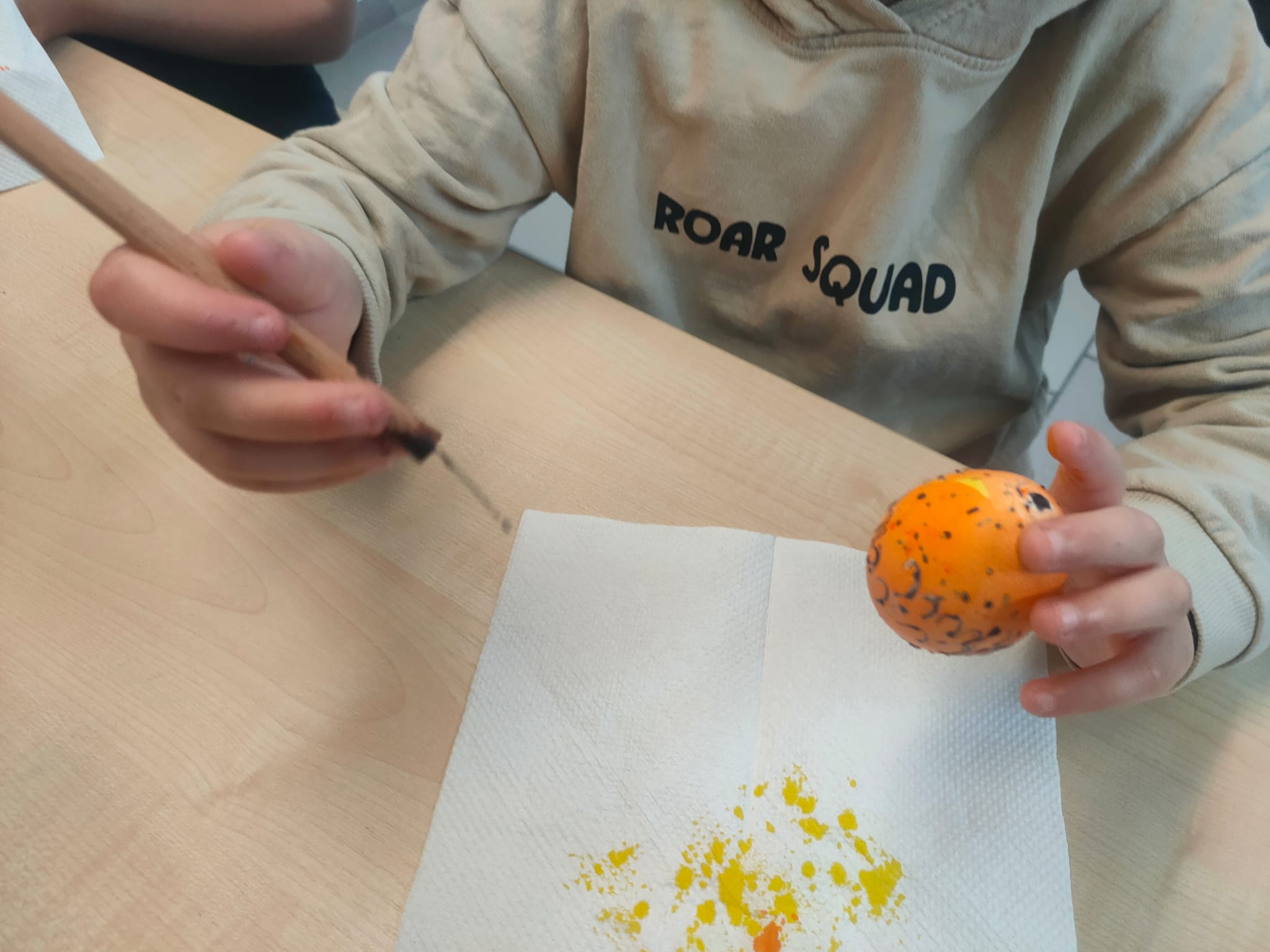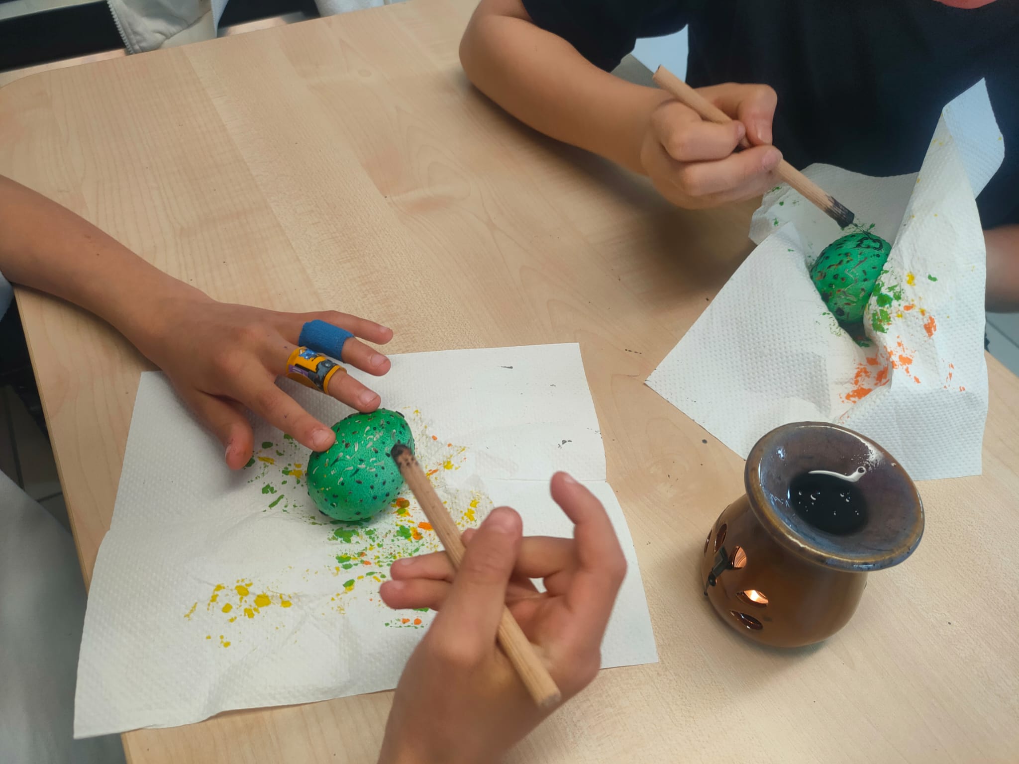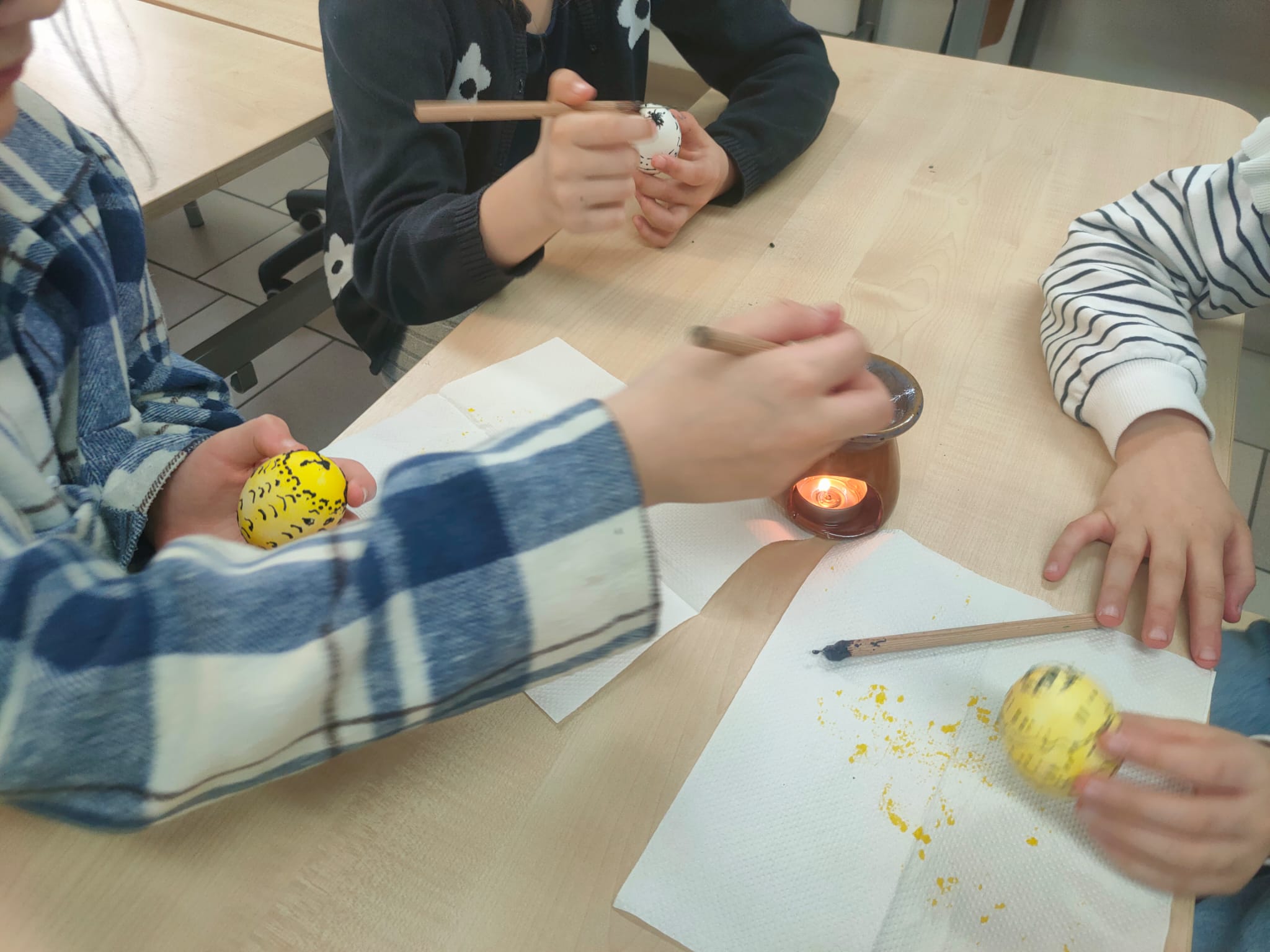 Podczas warsztatów plastyki obrzędowej, które odbyły się w naszej szkole 3 i 4 kwietnia, tworzyliśmy pisanki w technice batikowej. Warsztaty przeprowadził Piotr Rozumek nauczyciel naszej szkoły, w klasach 2a, 2b, 3a. Była to świetna okazja, żeby poznać tradycyjne metody zdobienia jajek, które mają głęboki wymiar obrzędowy i kulturowy. W trakcie warsztatów uczyliśmy się, jak za pomocą wosku i barwników tworzyć piękne, unikalne wzory na jajkach. To nie tylko była świetna zabawa, ale też sposób na poznanie bogatej tradycji i wyrażenie swojej kreatywności.