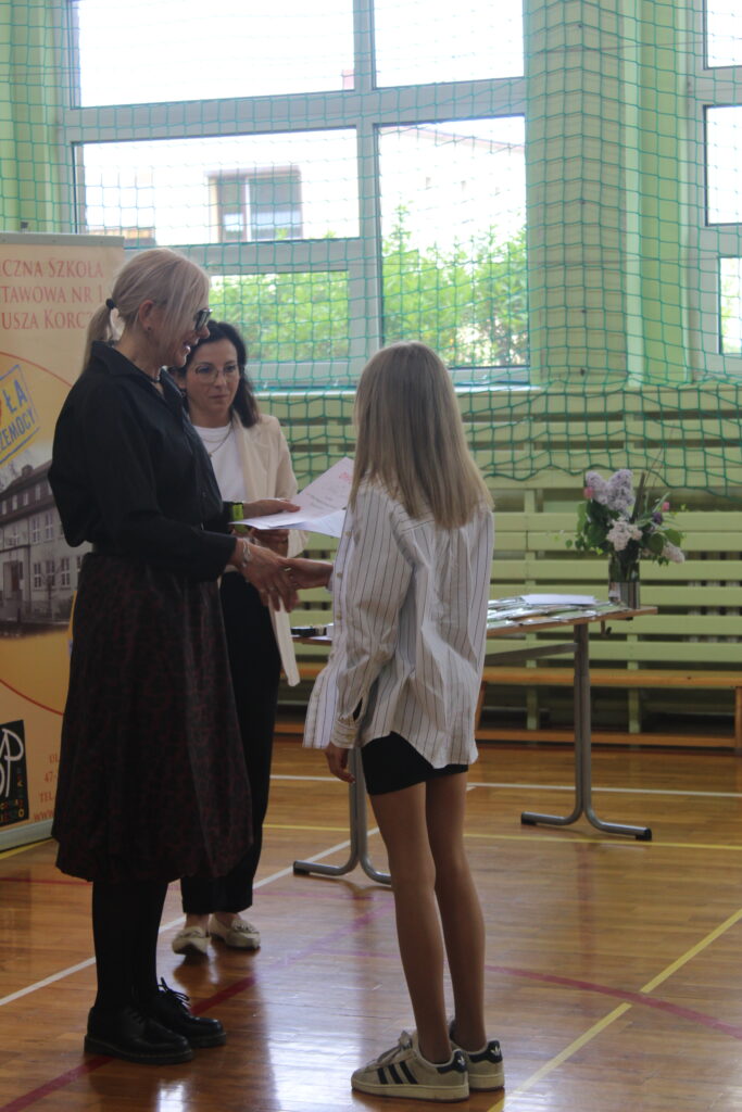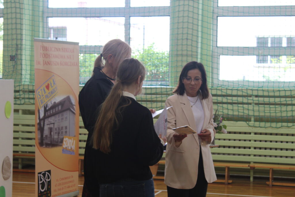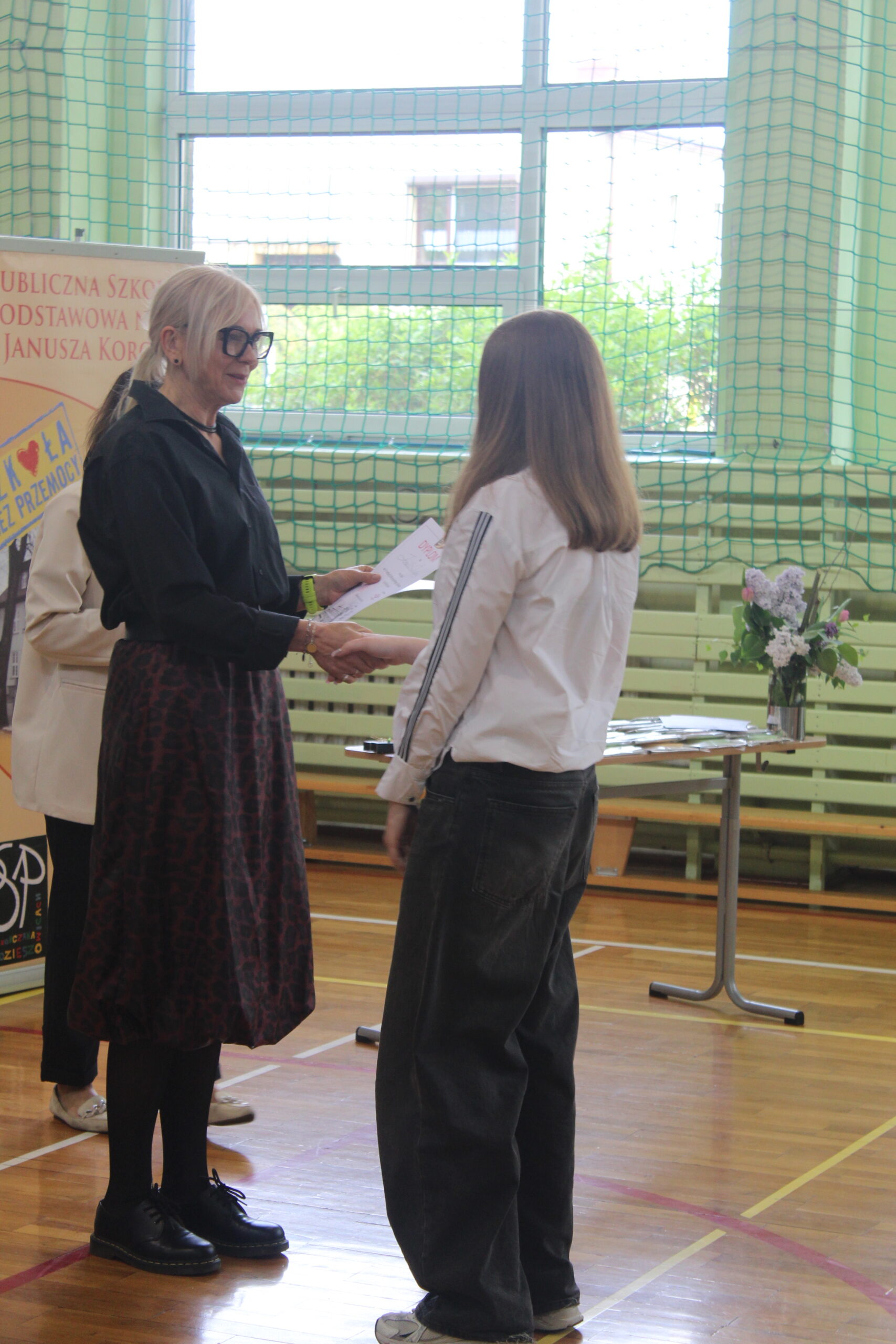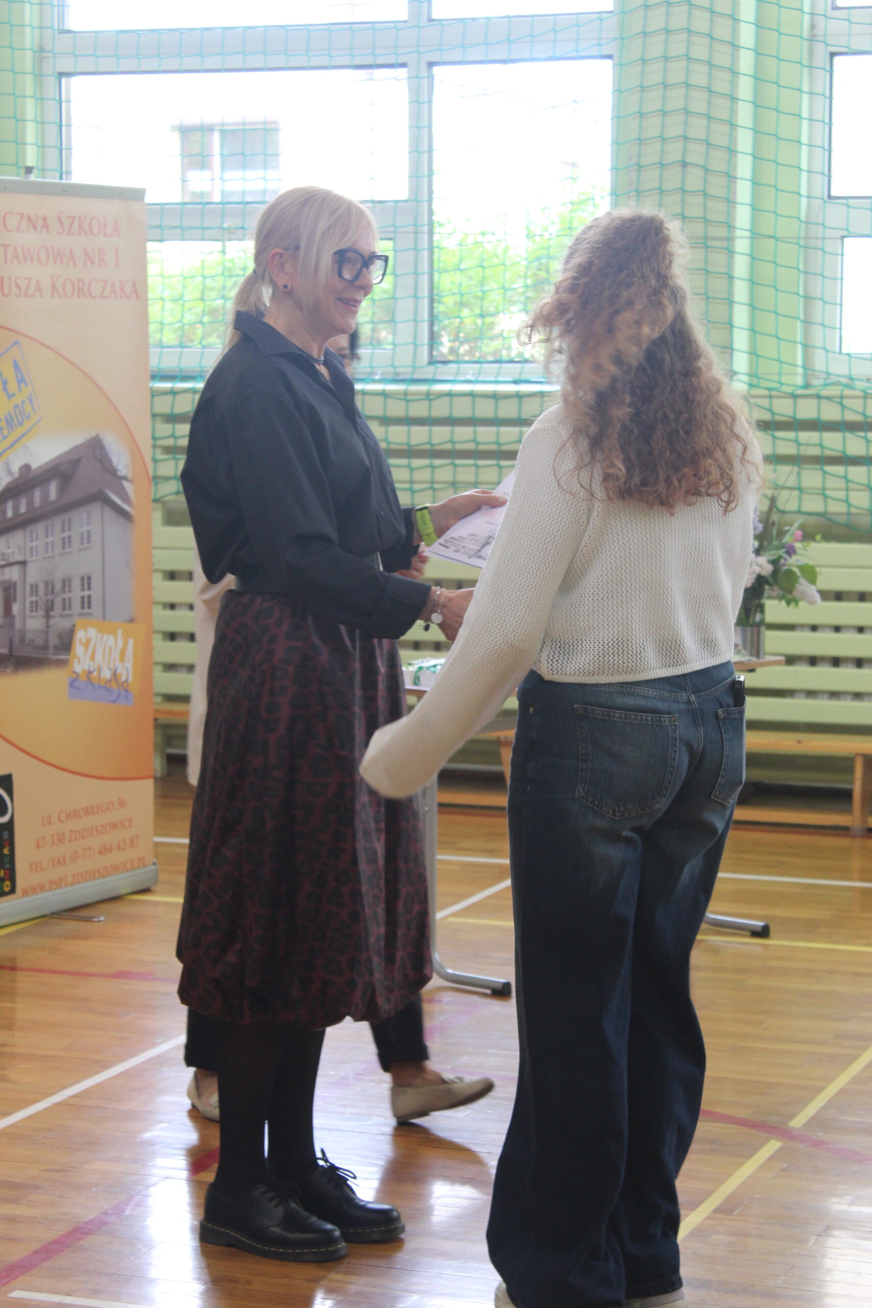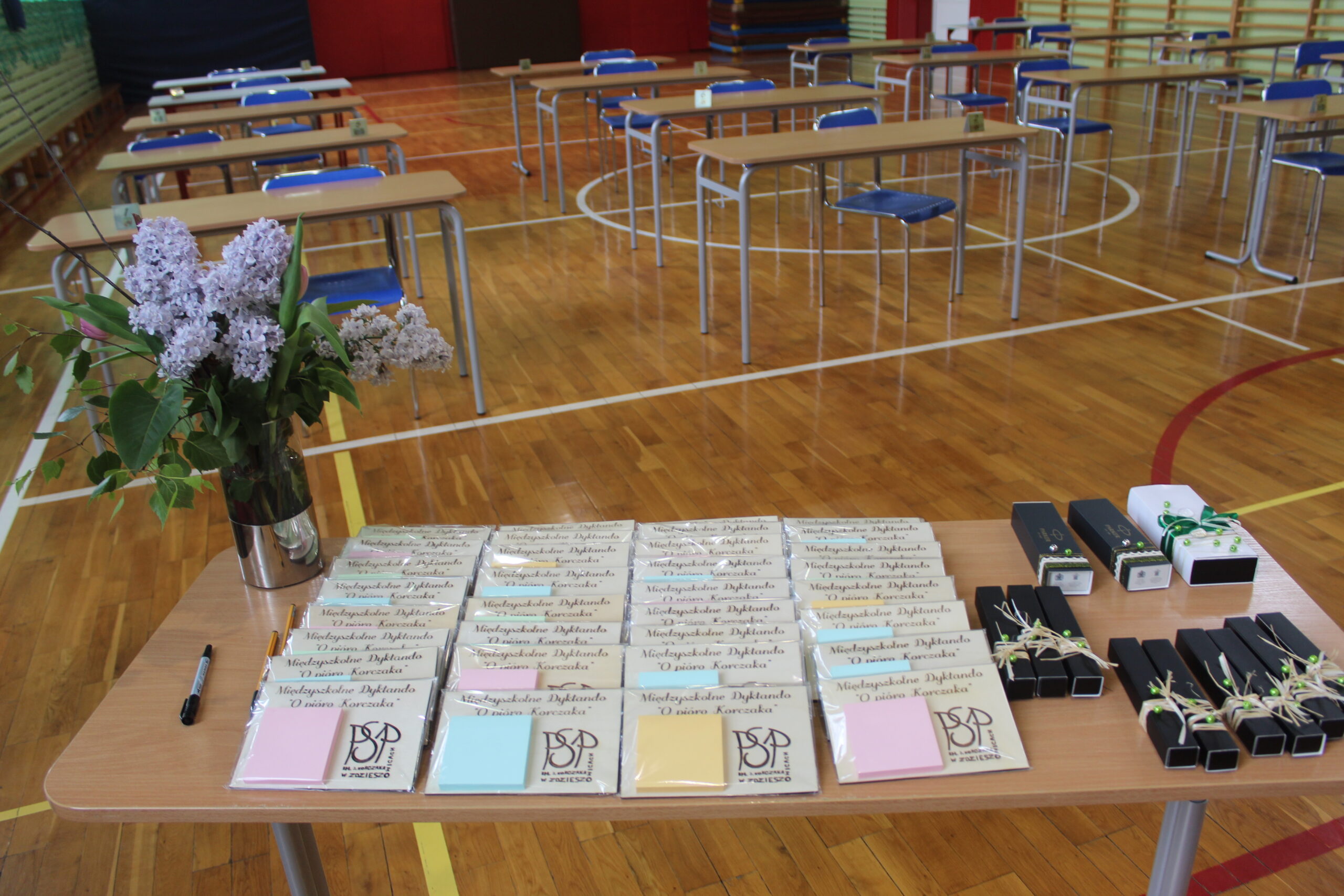 W dniu 6 maja 2025 roku w naszej szkole odbyła się już piąta – jubileuszowa edycja Międzyszkolnego Dyktanda „O pióro Korczaka”. W zmaganiach ortograficznych uczestniczyli uczniowie z różnych szkół z terenu naszej gminy. Tekst dyktanda został przygotowany specjalnie na tę okazję przez panią Barbarę Kulig, nauczycielkę języka polskiego. Tym razem tematem przewodnim była wiosna. Nad prawidłowym przebiegiem wydarzenia czuwała komisja, w której skład wchodzili nauczyciele z gminnych placówek oświatowych.