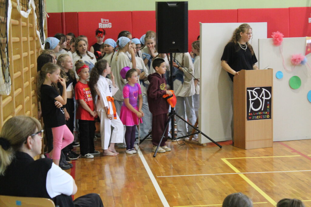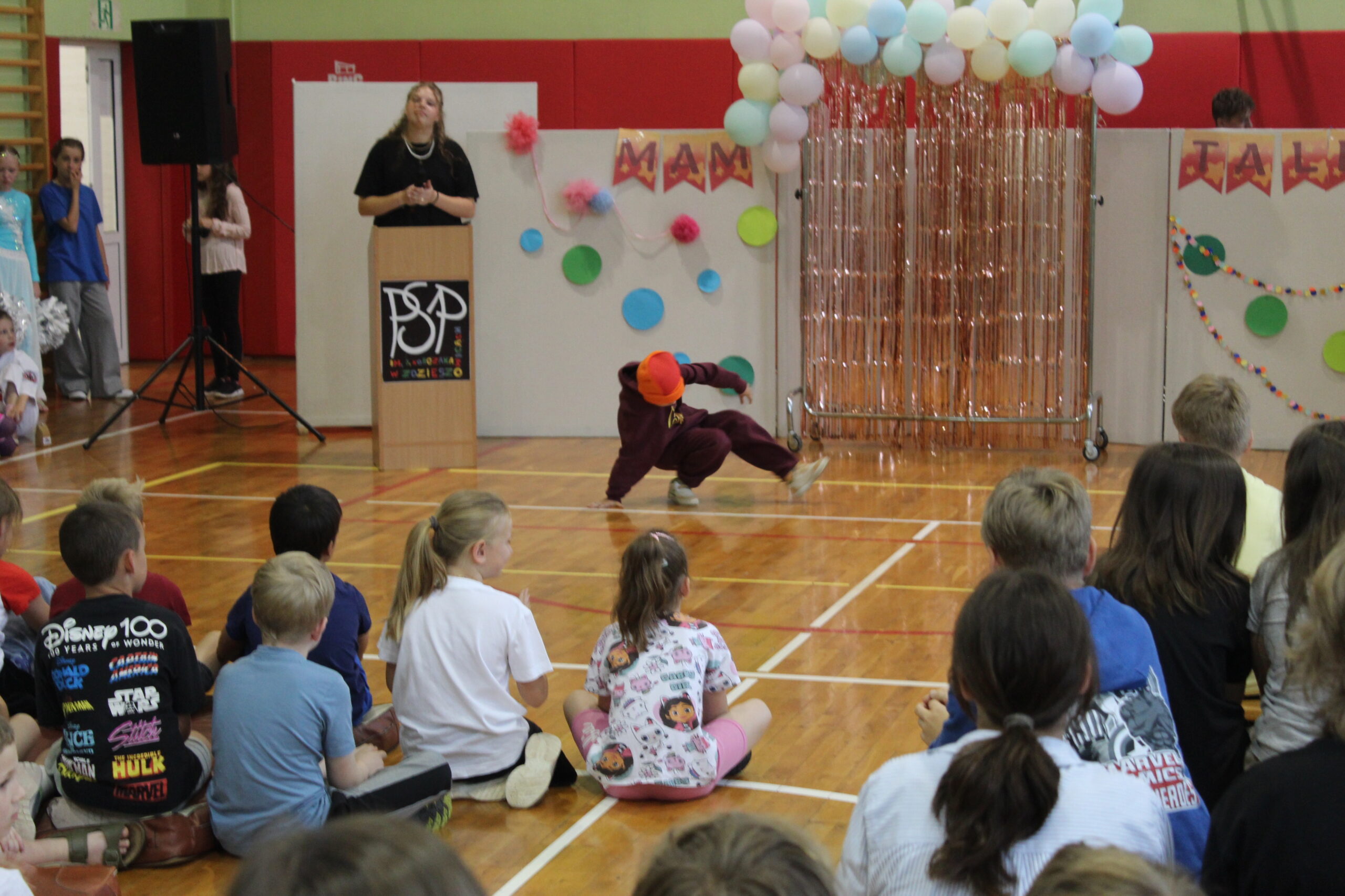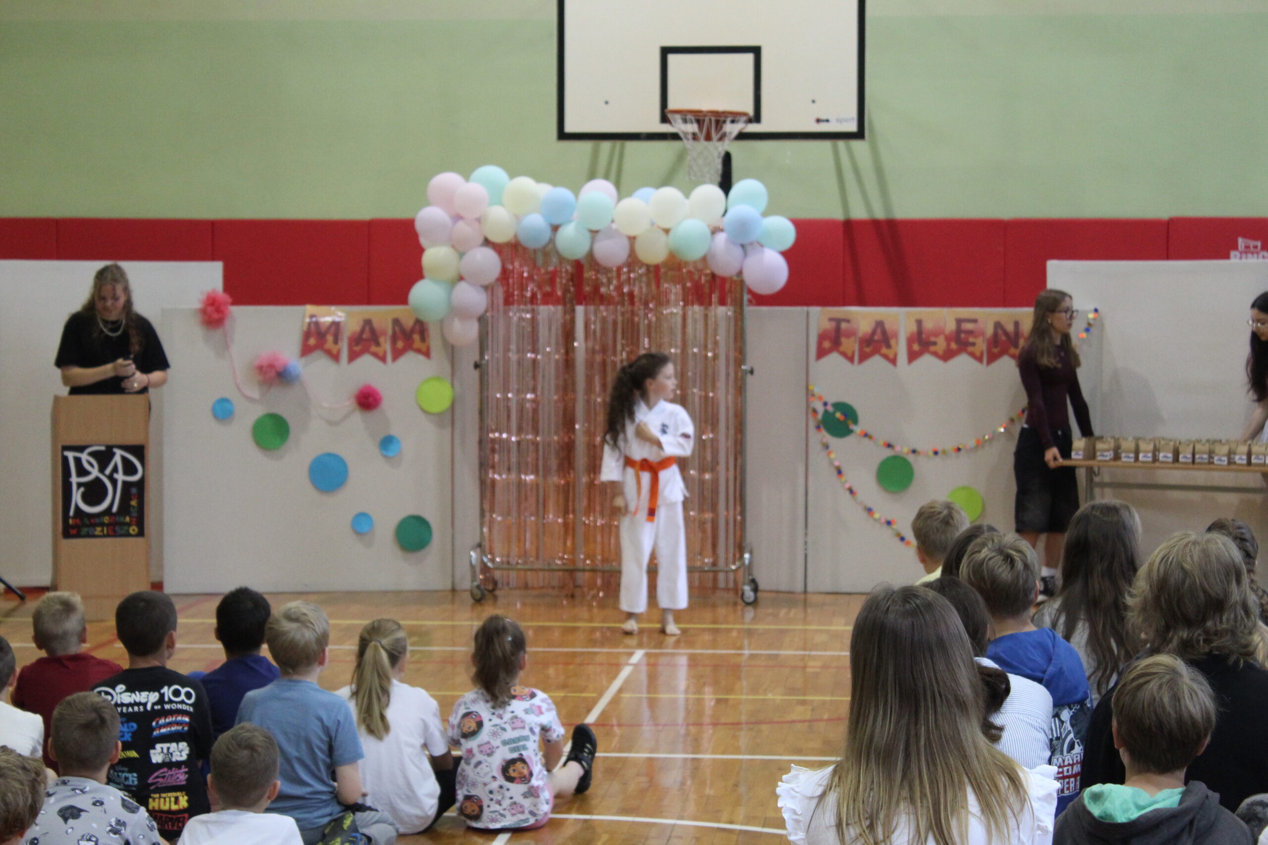 Uczniowie zaprezentowali swoje talenty w różnych dziedzinach, takich jak muzyka, taniec, akrobatyka, karate.