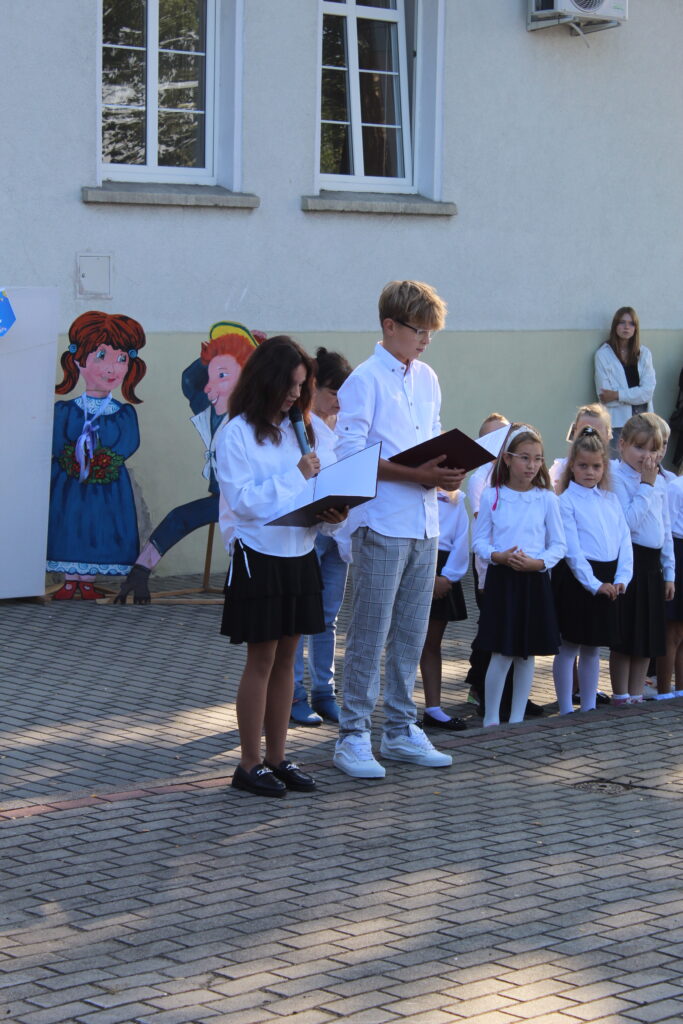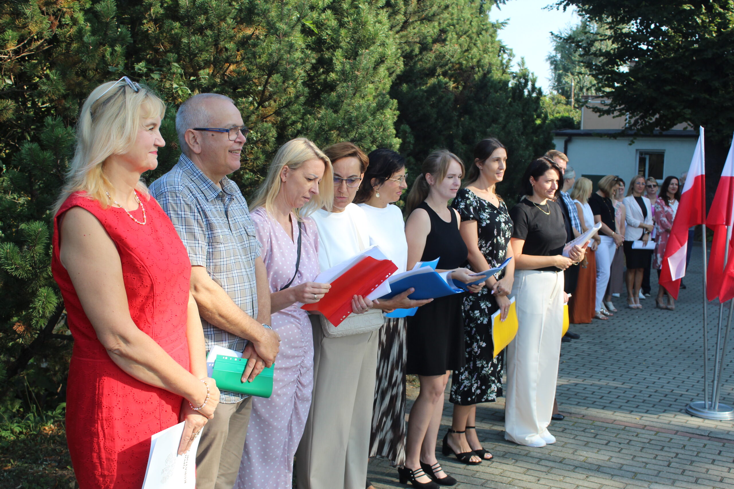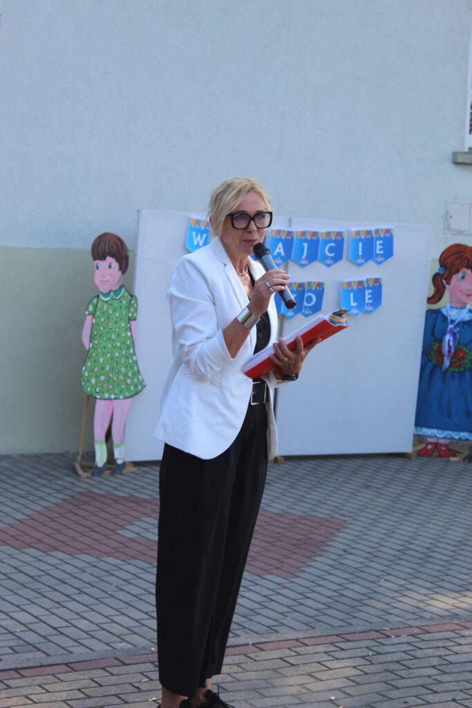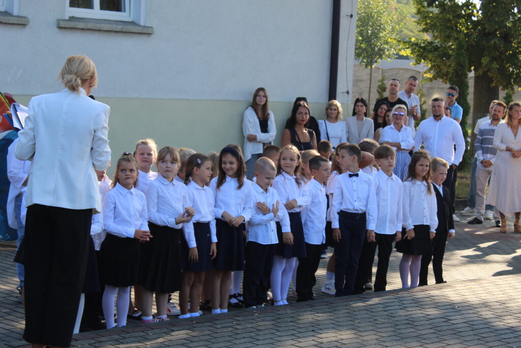 Po wprowadzeniu sztandaru i odśpiewaniu hymnu państwowego, uroczystego rozpoczęcia roku szkolnego dokonała pani dyrektor Beata Stadniczuk, witając zaproszonych rodziców, pracowników szkoły oraz uczniów, a w szczególności pierwszoklasistów, wkraczających w mury naszej placówki. Pierwszaki zaprezentowały się społeczności szkolnej i zostały przywitane gromkimi brawami. Podczas uroczystości obecna również była starsza wizytator Kuratorium Oświaty w Opolu- pani Jolanta Jaworek, która także życzyła wszystkim udanego roku pełnego sukcesów, inspiracji i rozwoju.