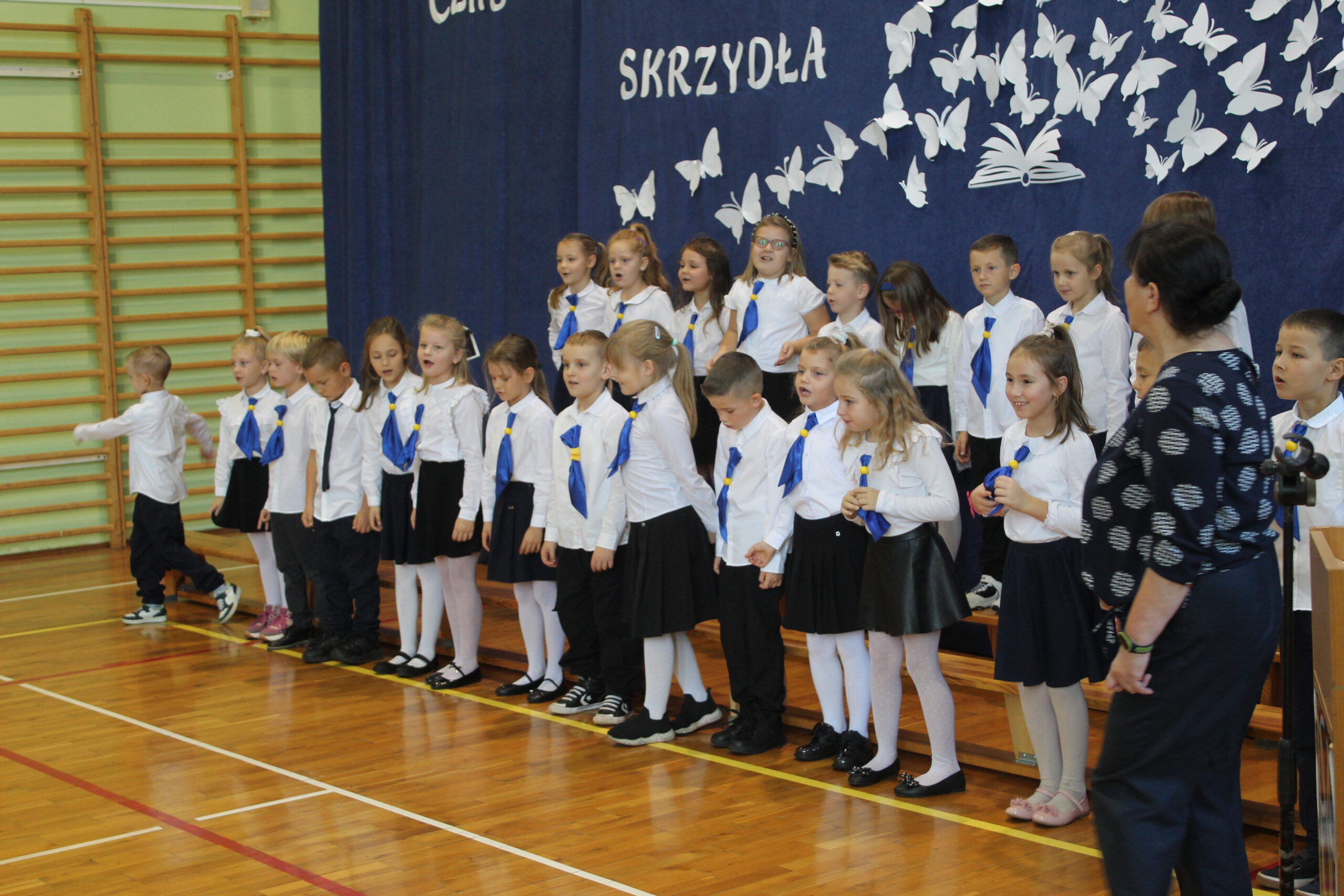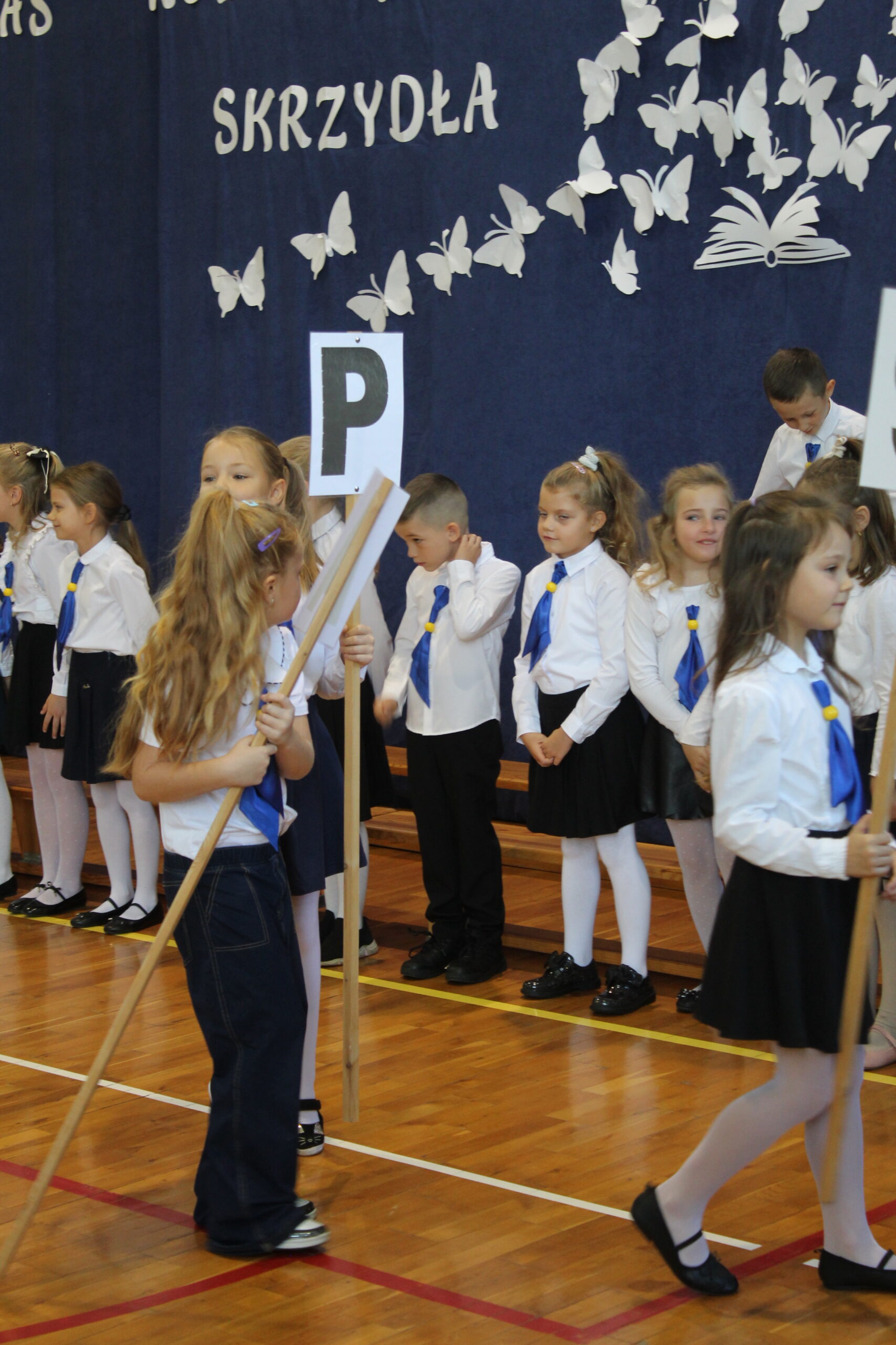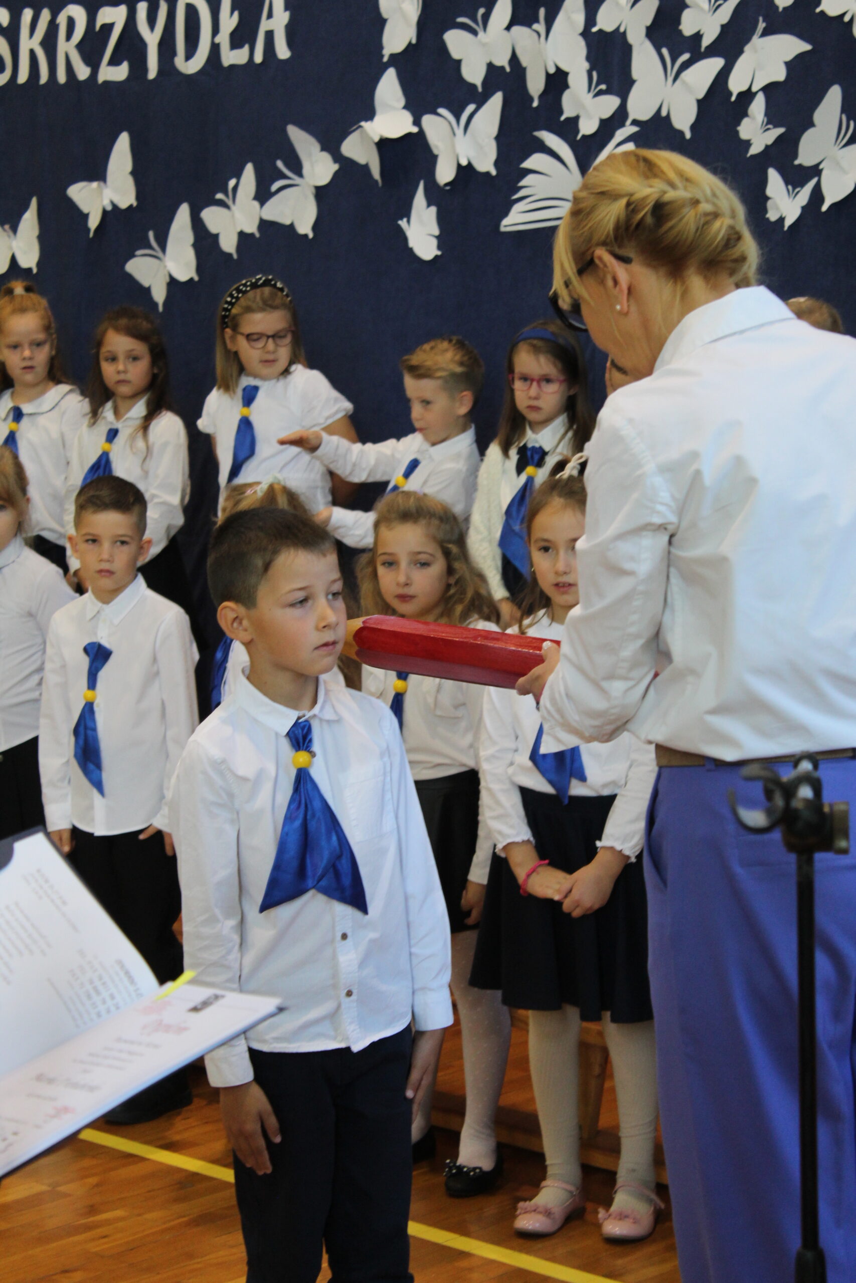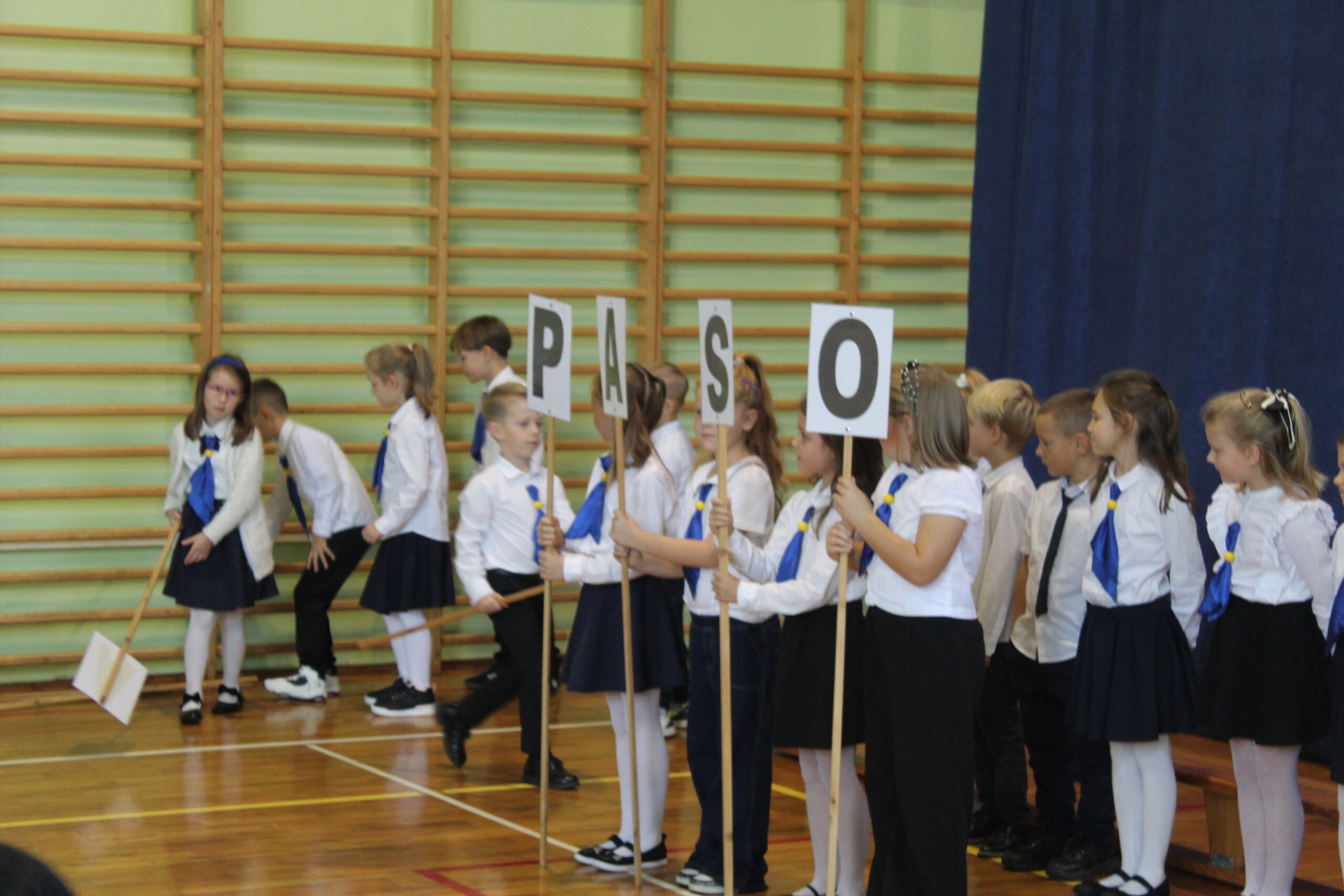 3 października 2025 to data, która na długo pozostanie w pamięci naszych najmłodszych uczniów. W tym dniu, w atmosferze pełnej radości i dumy, odbyło się uroczyste Pasowanie na Pierwszoklasistę. Nasza sala gimnastyczna, pięknie udekorowana i wypełniona po brzegi, stała się świadkiem tego wyjątkowego wydarzenia, które oficjalnie włączyło nowych adeptów wiedzy do szkolnej rodziny. Uroczystość zgromadziła mnóstwo gości, co tylko potwierdza, jak ważny to moment dla całej społeczności. Na sali nie zabrakło wzruszonych rodziców, a także dumnych dziadków i babć, którzy chcieli być blisko swoich pociech w tym kluczowym momencie ich edukacyjnej ścieżki. Obok nich, w odświętnych strojach galowych, zasiedli wszyscy nauczyciele i uczniowie z naszej szkoły, tworząc podniosłą i uroczystą oprawę. Zanim doszło do kluczowego momentu pasowania, nasi pierwszoklasiści musieli udowodnić, że są gotowi sprostać szkolnym wyzwaniom. Egzamin ten, choć symboliczny, wymagał od nich wykazania się podstawową wiedzą z treści polonistycznych i matematycznych. Poradzili sobie z nim śpiewająco! Prawdziwym popisem było natomiast piękne i pełne zaangażowania odśpiewanie hymnu szkoły, co wywołało uśmiech i wzruszenie na twarzach dorosłych. Punktem kulminacyjnym było Ślubowanie. W blasku sztandaru szkoły, pani dyrektor odczytała słowa przysięgi, w której uczniowie zobowiązywali się do pilności, szacunku i godnego reprezentowania szkoły. Mali bohaterowie, przez podniesienie ręki, oficjalnie złożyli to zobowiązanie, stając się pełnoprawnymi członkami społeczności uczniowskiej.