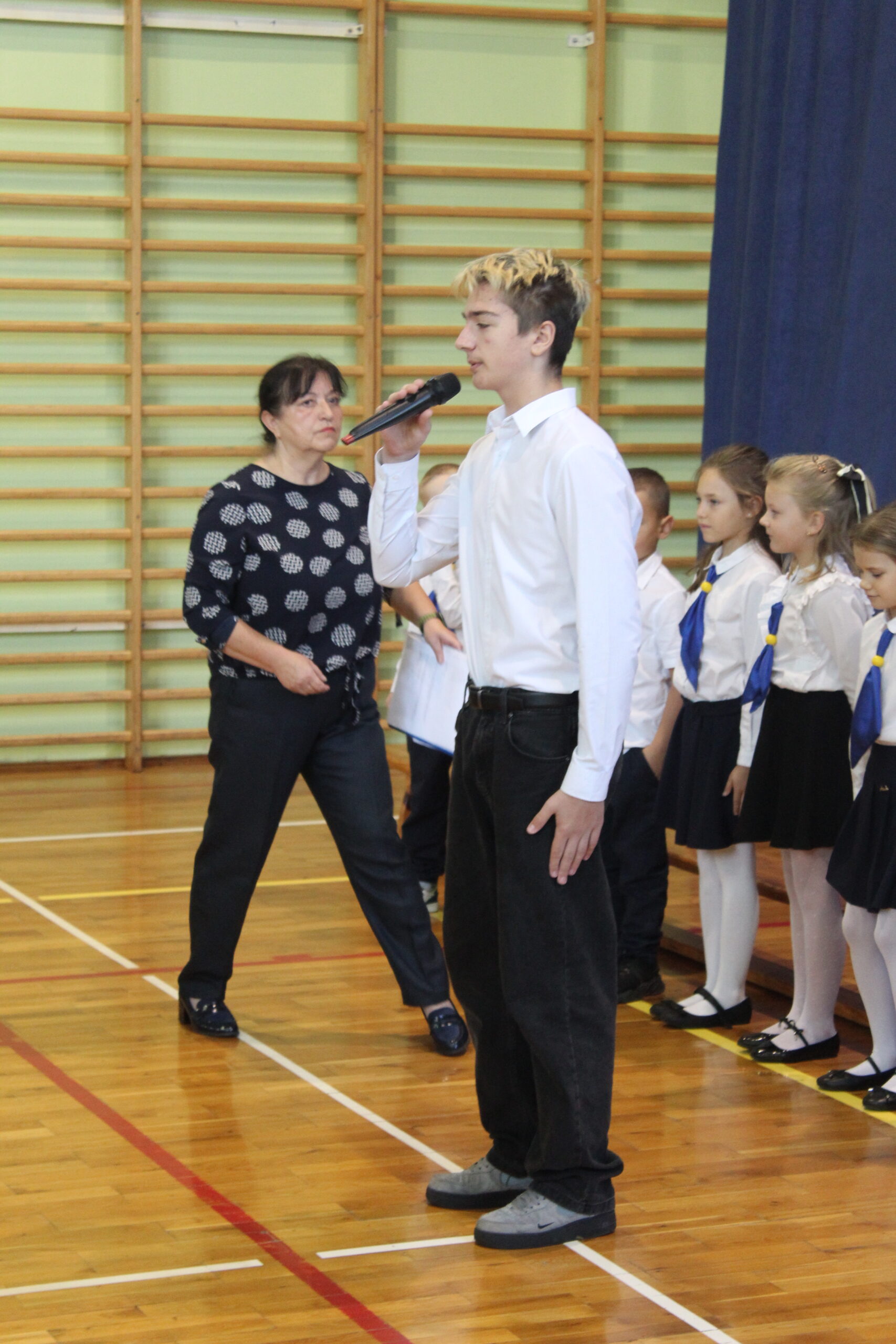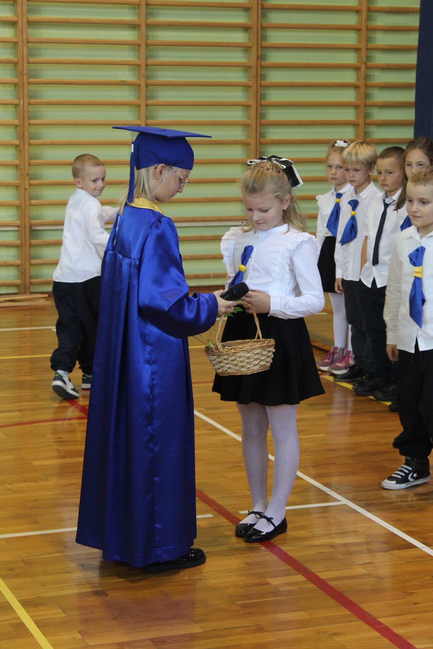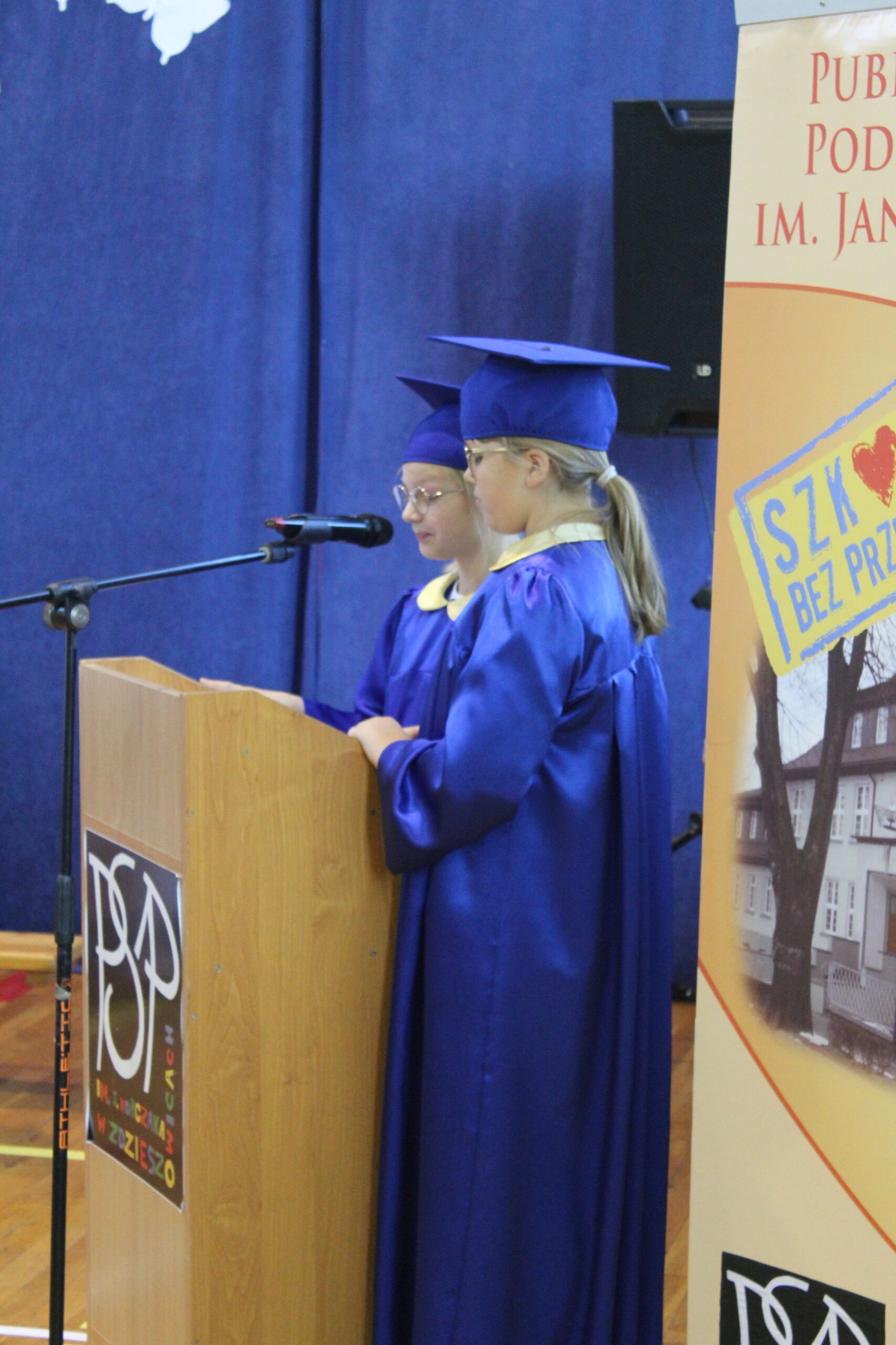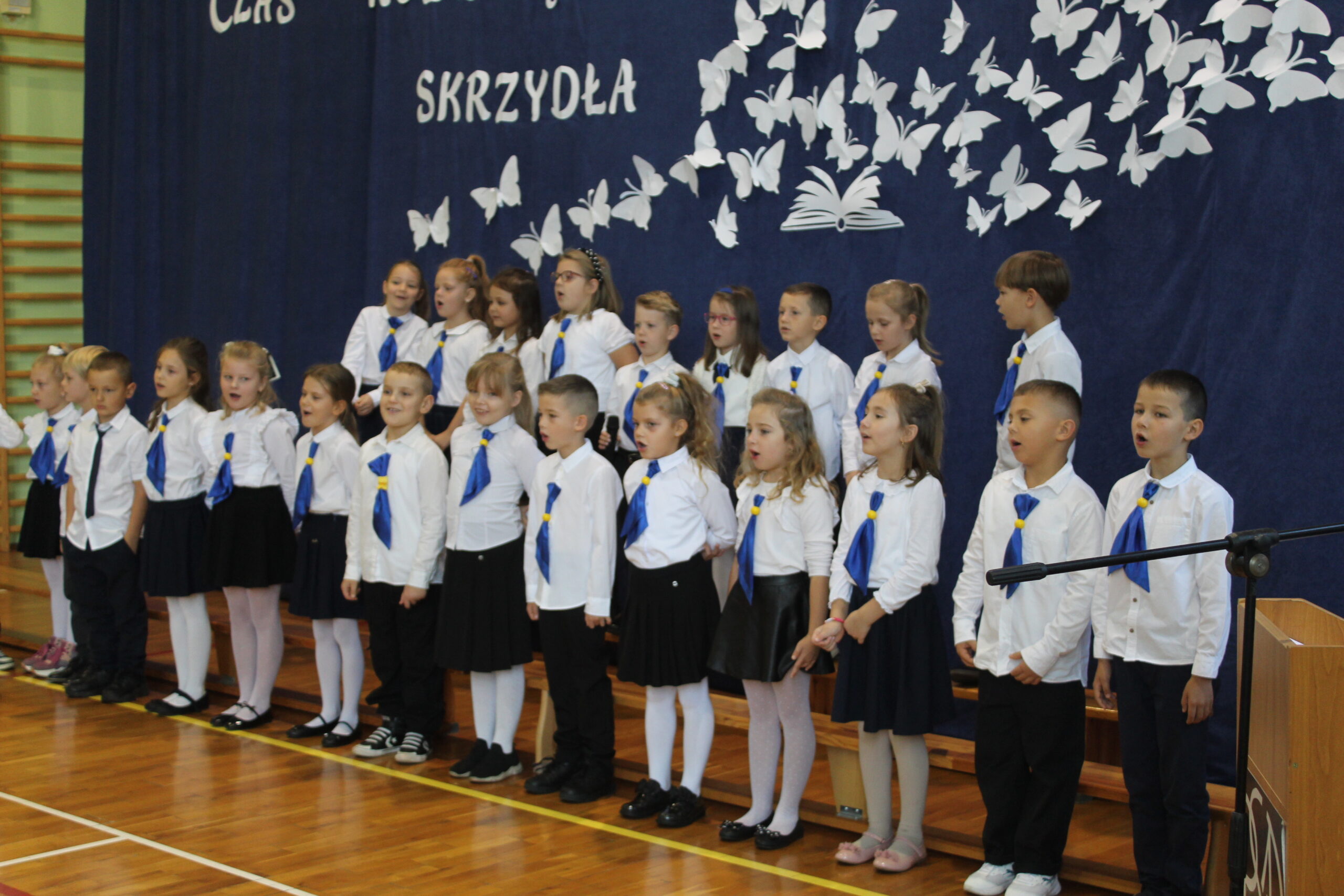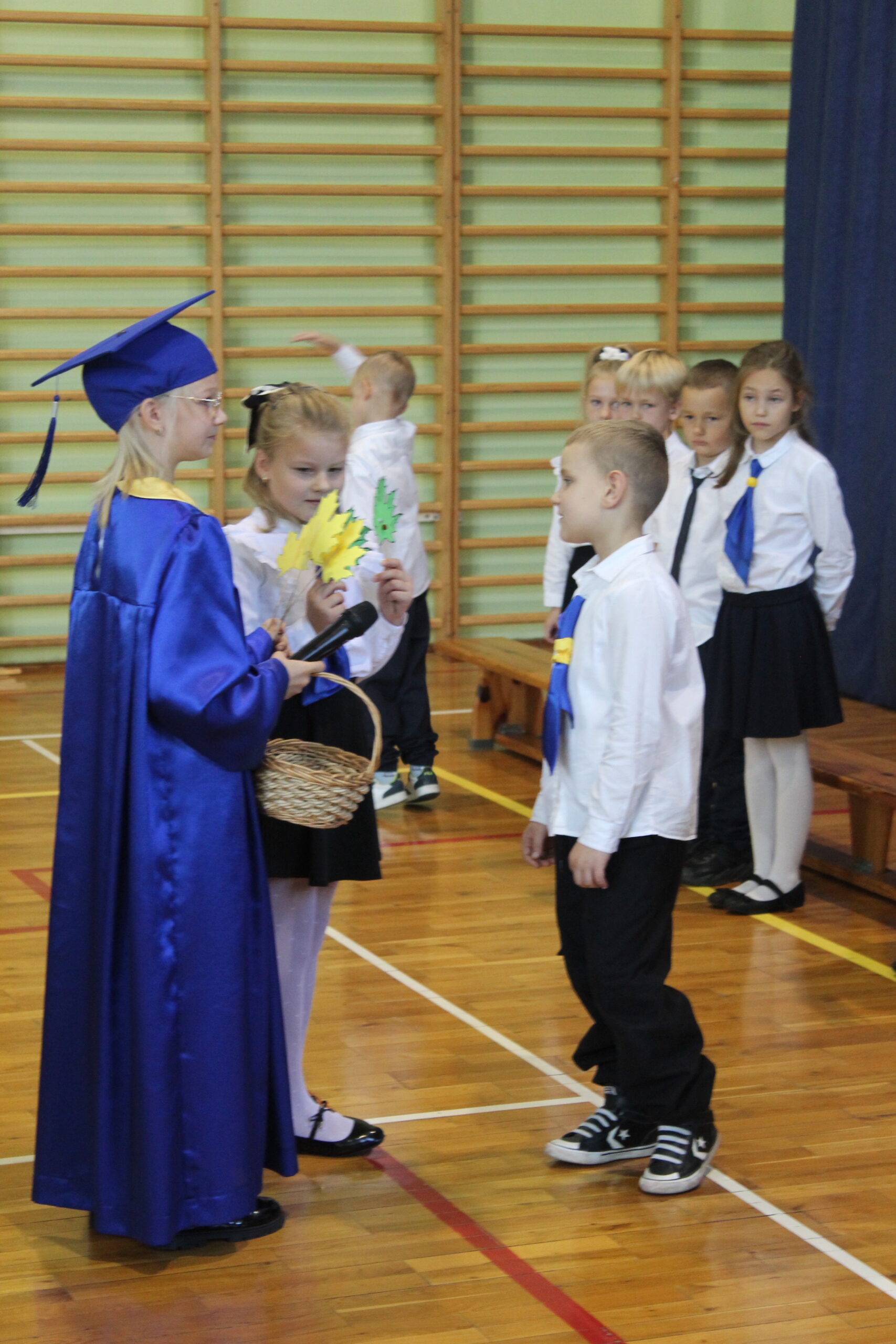 3 października 2025 to data, która na długo pozostanie w pamięci naszych najmłodszych uczniów. W tym dniu, w atmosferze pełnej radości i dumy, odbyło się uroczyste Pasowanie na Pierwszoklasistę. Nasza sala gimnastyczna, pięknie udekorowana i wypełniona po brzegi, stała się świadkiem tego wyjątkowego wydarzenia, które oficjalnie włączyło nowych adeptów wiedzy do szkolnej rodziny. Uroczystość zgromadziła mnóstwo gości, co tylko potwierdza, jak ważny to moment dla całej społeczności. Na sali nie zabrakło wzruszonych rodziców, a także dumnych dziadków i babć, którzy chcieli być blisko swoich pociech w tym kluczowym momencie ich edukacyjnej ścieżki. Obok nich, w odświętnych strojach galowych, zasiedli wszyscy nauczyciele i uczniowie z naszej szkoły, tworząc podniosłą i uroczystą oprawę. Zanim doszło do kluczowego momentu pasowania, nasi pierwszoklasiści musieli udowodnić, że są gotowi sprostać szkolnym wyzwaniom. Egzamin ten, choć symboliczny, wymagał od nich wykazania się podstawową wiedzą z treści polonistycznych i matematycznych. Poradzili sobie z nim śpiewająco! Prawdziwym popisem było natomiast piękne i pełne zaangażowania odśpiewanie hymnu szkoły, co wywołało uśmiech i wzruszenie na twarzach dorosłych. Punktem kulminacyjnym było Ślubowanie. W blasku sztandaru szkoły, pani dyrektor odczytała słowa przysięgi, w której uczniowie zobowiązywali się do pilności, szacunku i godnego reprezentowania szkoły. Mali bohaterowie, przez podniesienie ręki, oficjalnie złożyli to zobowiązanie, stając się pełnoprawnymi członkami społeczności uczniowskiej.