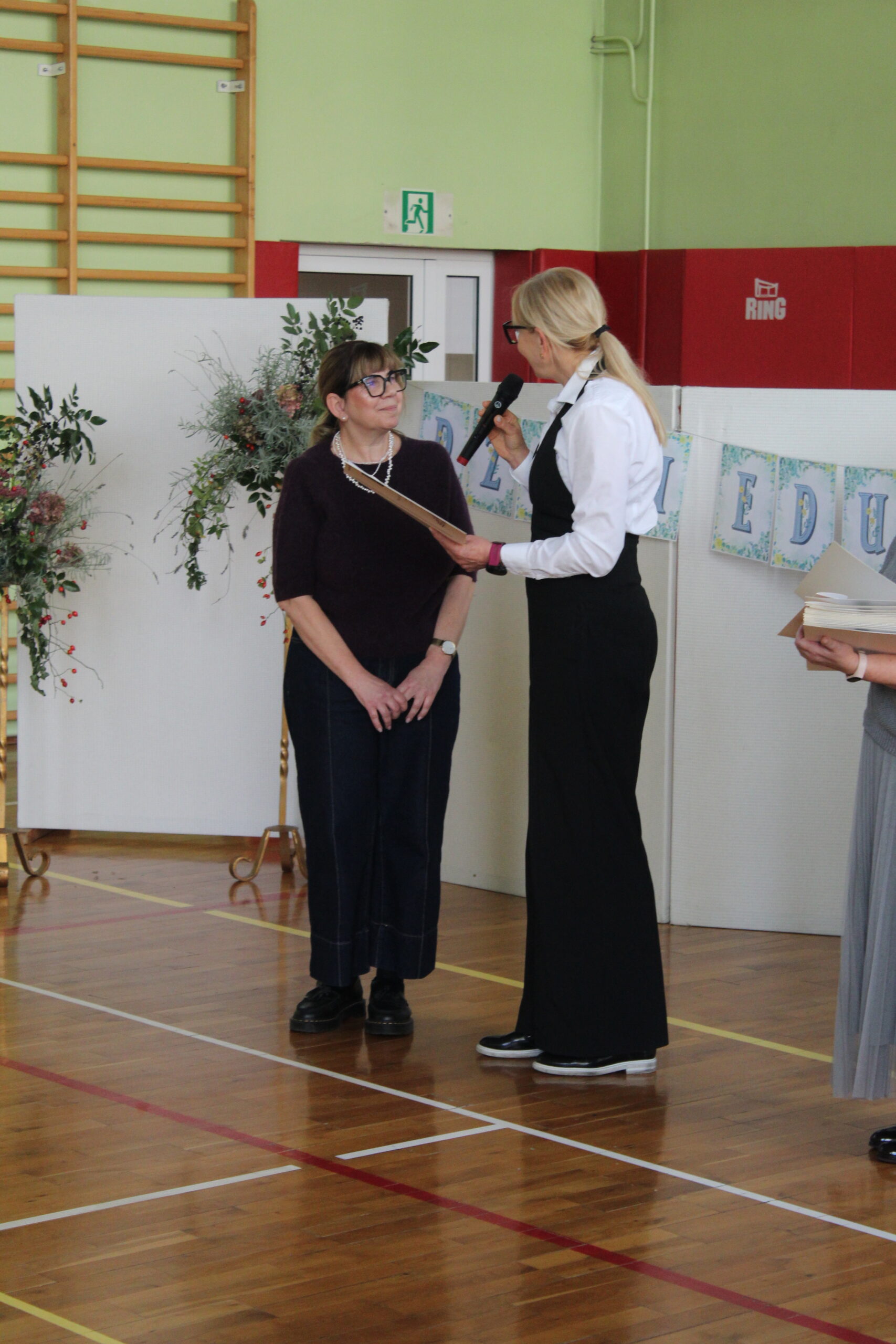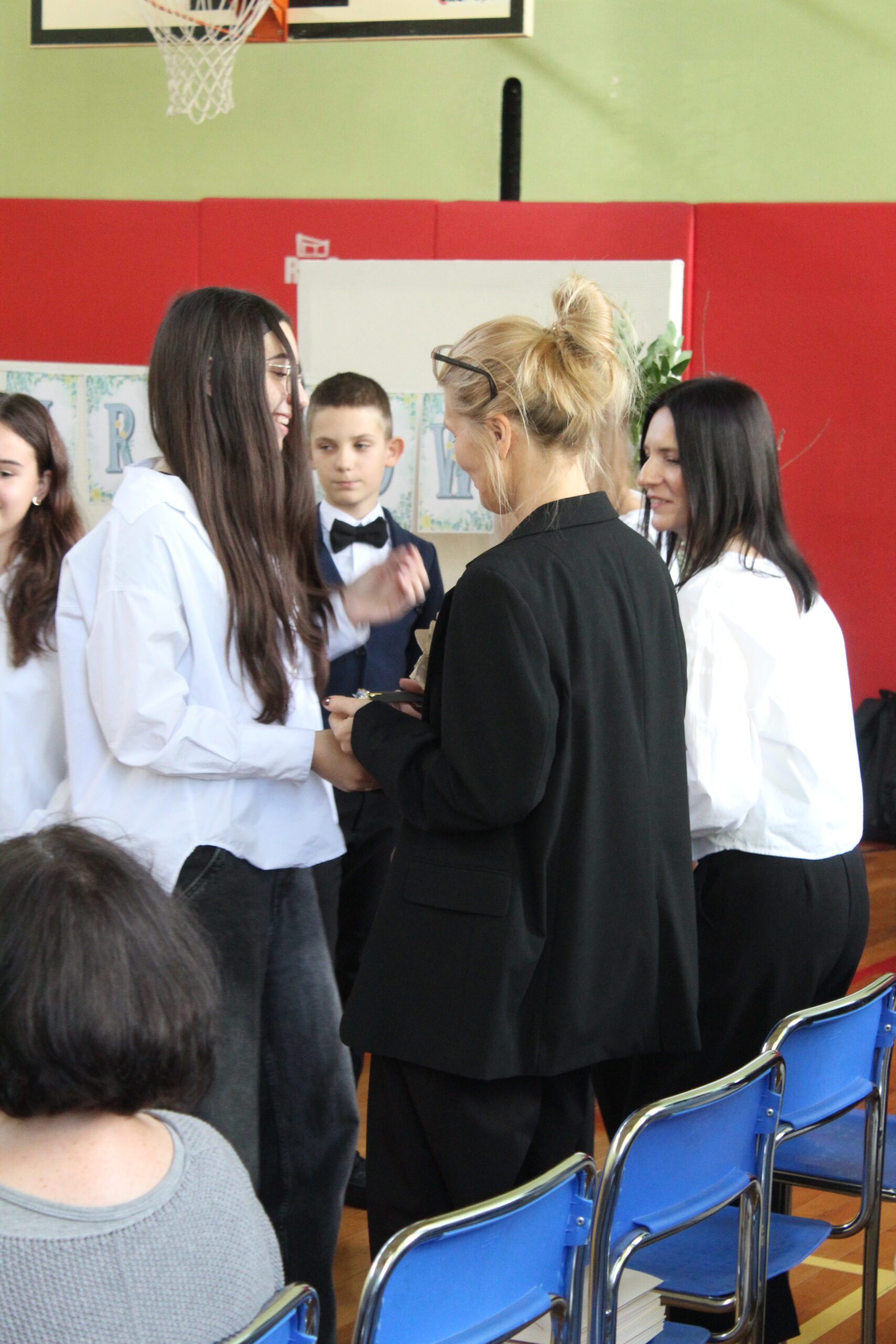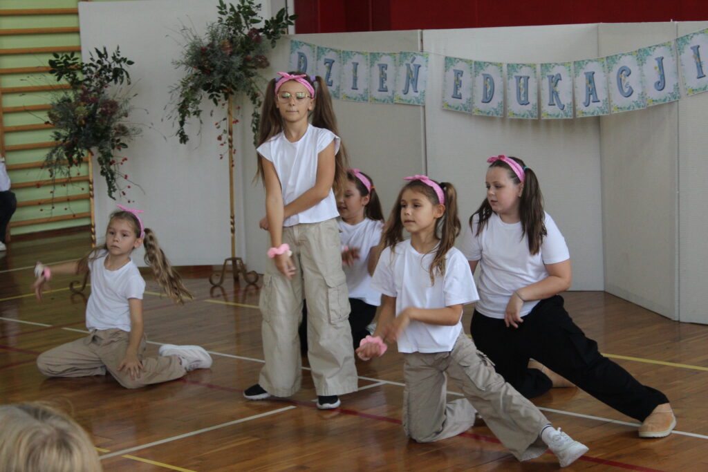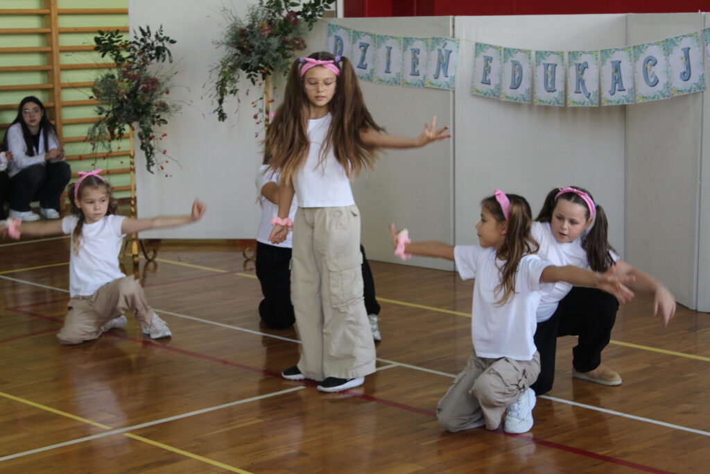 W części artystycznej samorząd uczniowski oraz uczniowie klasy 3b wyrazili swoje podziękowanie i słowa uznania dla trudnej pracy pedagogów.