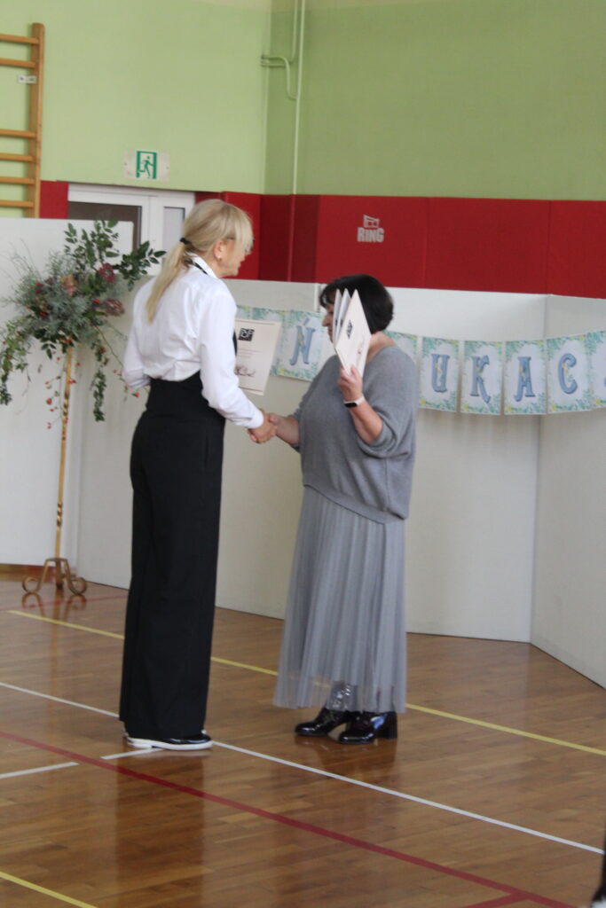 13 października w naszej szkole odbyła się uroczysta akademia z okazji Dnia Edukacji Narodowej. Na uroczystość przybyli nauczyciele, pracownicy administracji i obsługi. W części oficjalnej głos zabrała Pani dyrektor Beata Stadniczuk, która podziękowała za trud wkładany w wychowanie i kształcenie dzieci życząc jednocześnie satysfakcji i radości z wykonywanej pracy, a także dalszych sukcesów.