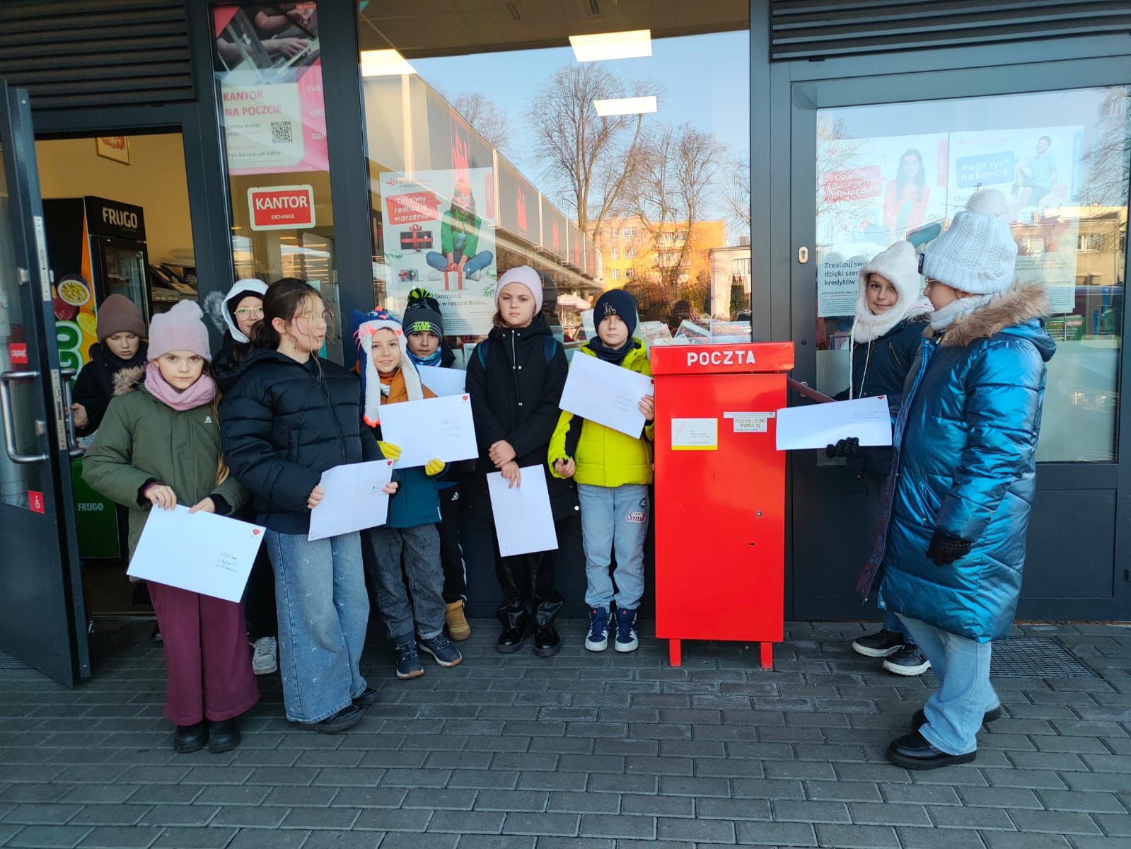 W ramach przygotowań do nadchodzących Świąt uczniowie klas trzecich wybrali się na pocztę, aby wysłać własnoręcznie przygotowane kartki świąteczne do swoich rodzin. Była to doskonała okazja, by poznać pracę poczty, utrwalić zasady poprawnego adresowania przesyłek oraz kultywować piękną tradycję wysyłania kartek z życzeniami.