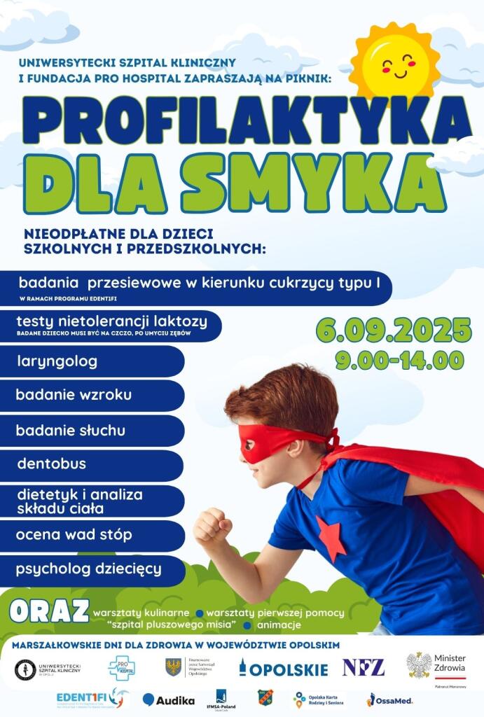 W pierwszą sobotę września dzieci w wieku przedszkolno-szkolnym i ich rodziców, opiekunów zapraszamy na badania (słuchu, wzroku, stóp, pod kątem wykrywania cukrzycy i nietolerancji laktozy) i konsultacje (dietetyczne, psychologiczne, stomatologiczne). Akcja Profilaktyka dla Smyka prowadzona jest w Uniwersyteckim Szpitalu Klinicznym w Opolu po raz drugi. Odbędzie się 6 września w godz. 9 – 14,…