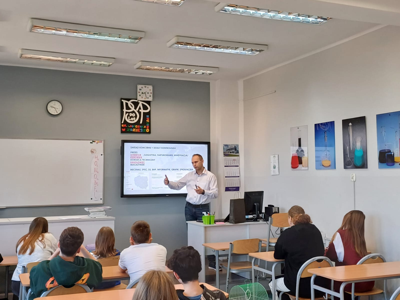 W ramach realizacji projektu „Kariera bez barier” w dniu 04.04.2025 uczniowie klasy 8a Publicznej Szkoły Podstawowej nr 1 im. Janusza Korczaka w Zdzieszowicach mieli okazję brać udział w spotkaniu z p. Januszem Sojką- Dyrektorem Działu Budownictwa Kubaturowego w firmie SKN. Podczas spotkania uczniowie poznali takie zawody jak: handlowiec, magazynier, doradca…