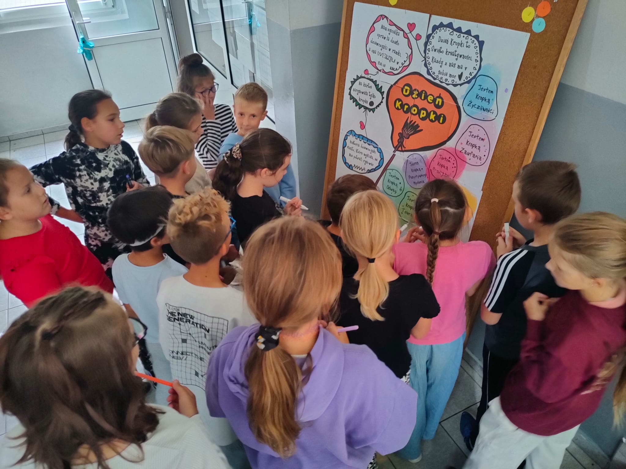 W poniedziałek 15 września 2025 r. obchodziliśmy Międzynarodowy Dzień Kropki. Jest to święto odkrywania talentów, kreatywności, odwagi, a przede wszystkim dobrej zabawy. Podczas lekcji oglądaliśmy film „The Dot”, którego bohaterką była mała dziewczynka Vashti, która nie wierzyła we własne możliwości. Film ukazał nam, że w każdym z nas drzemie ukryty…